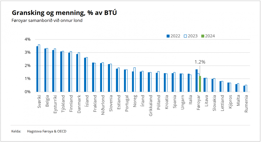 Føroyar granskaðu og mentu fyri 1,2 prosent av bruttotjóðarúrtøkuni í fjør.